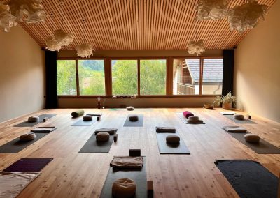 - Morgens und Abends Yoga Einheiten, Embodiement, Breathwork und Entspannung